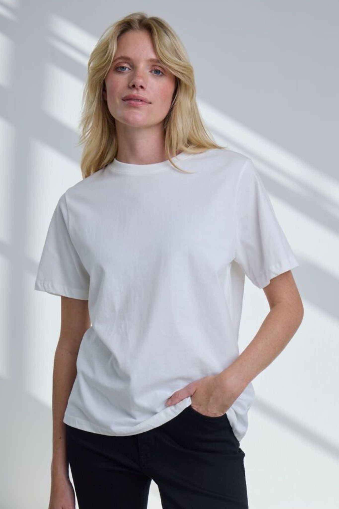 T-shirt med lös passform, korta ärmar och rund halsringning.