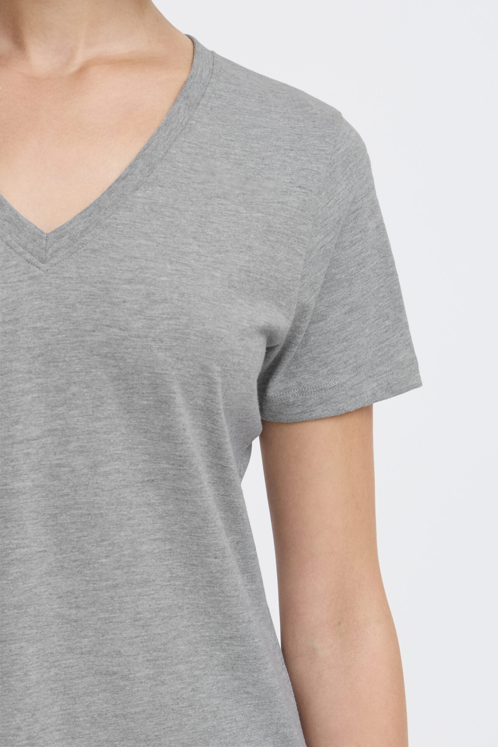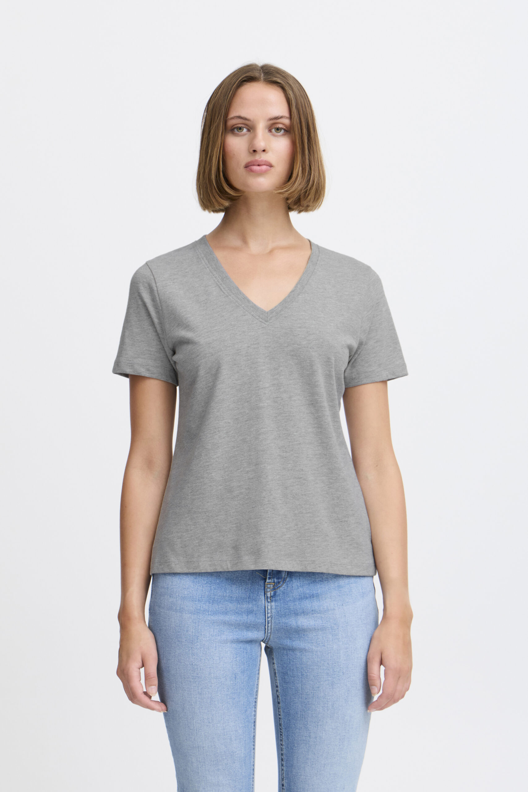 T-shirt med V-ringning, en rak, något boxig passform och korta ärmar.