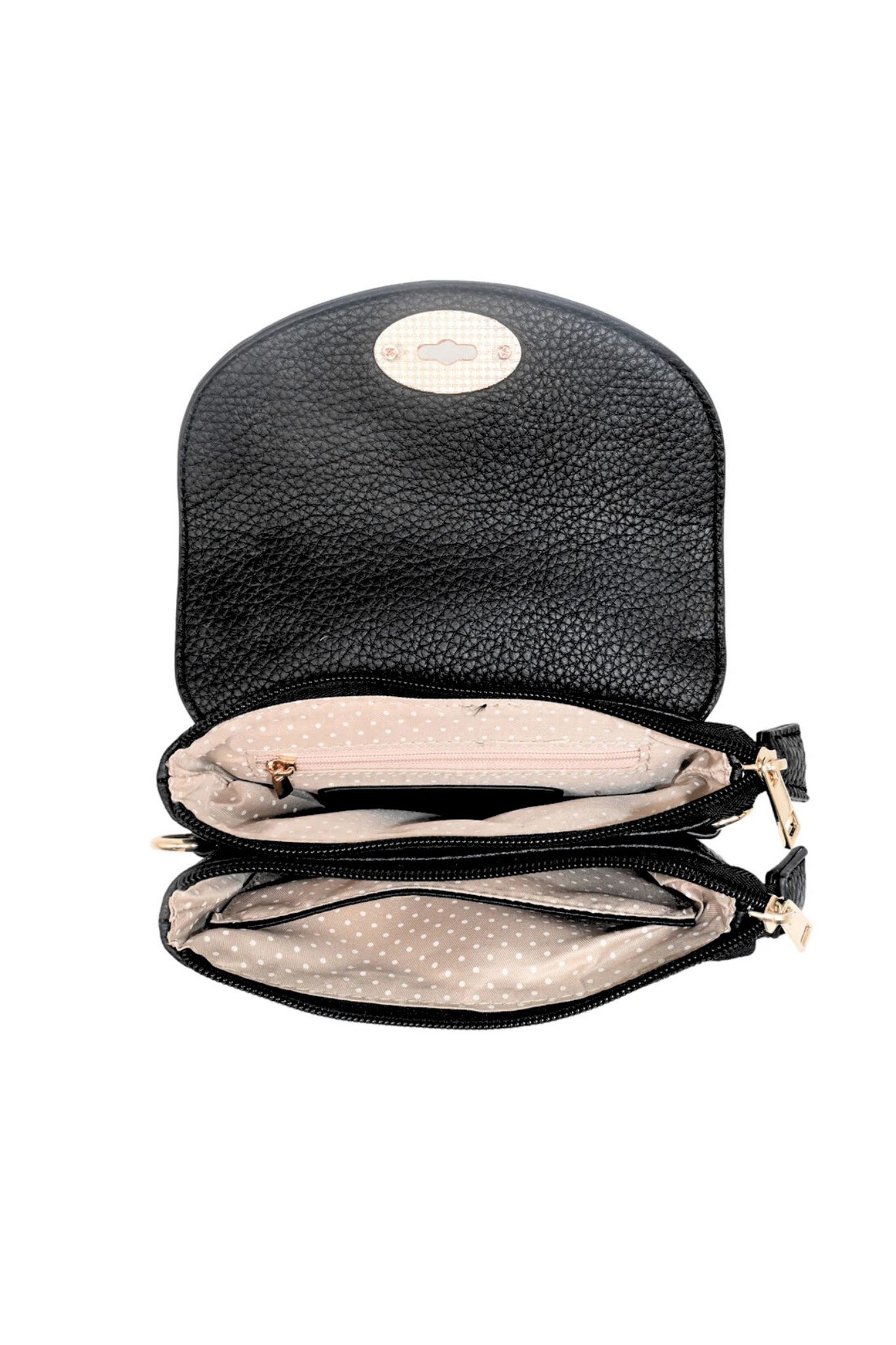 Väskan har 2 huvudfack som båda stängs med dragkedja. Det ena facket har en glidficka i fodret och det andra facket har en ficka i fodret som stängs med smedsdragkedja. Själva väskan stängs med en flip och lås.