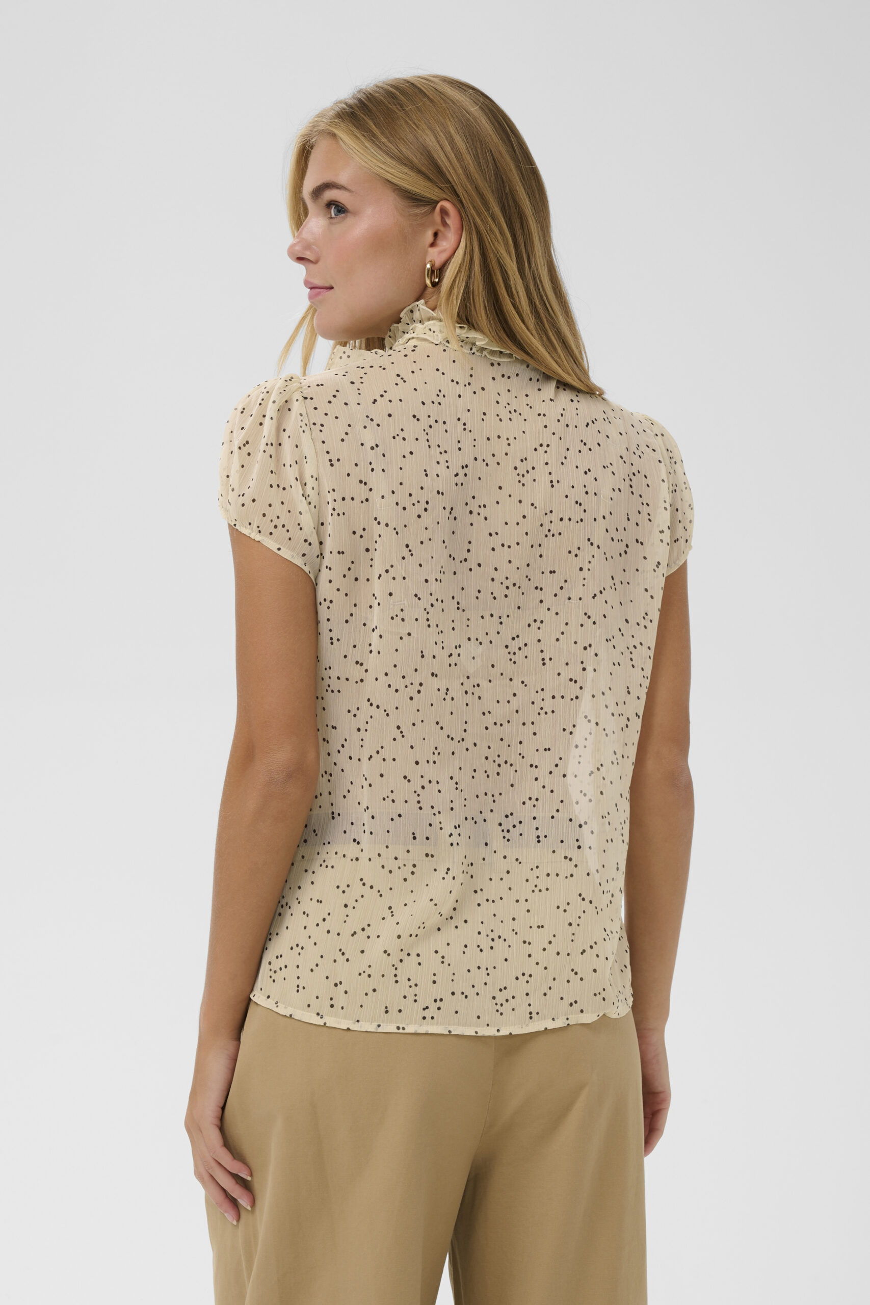 Lilja SS Volangblus – Creme Black Mini Dots