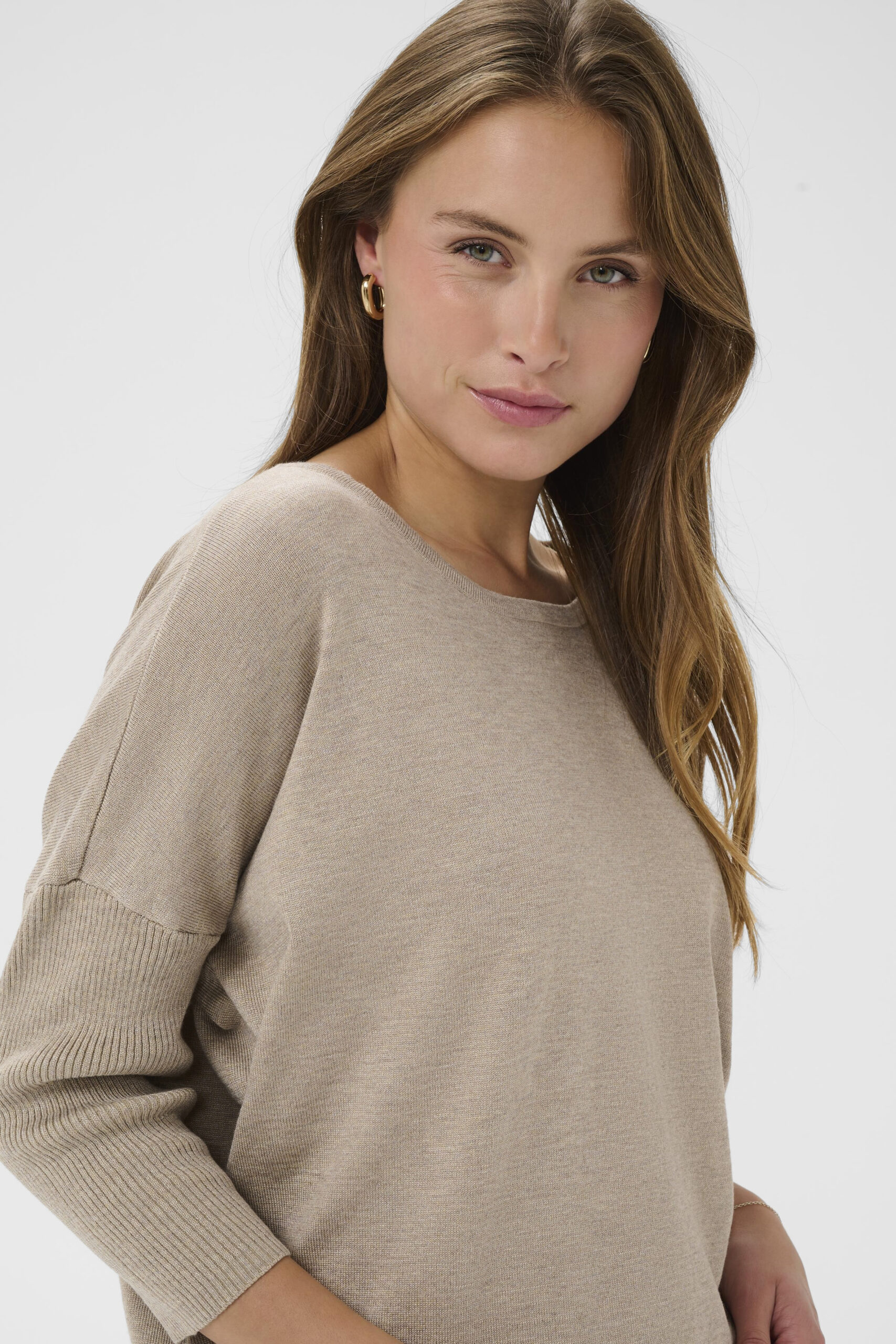 Mila R-Neck Tröja – Greige Melange