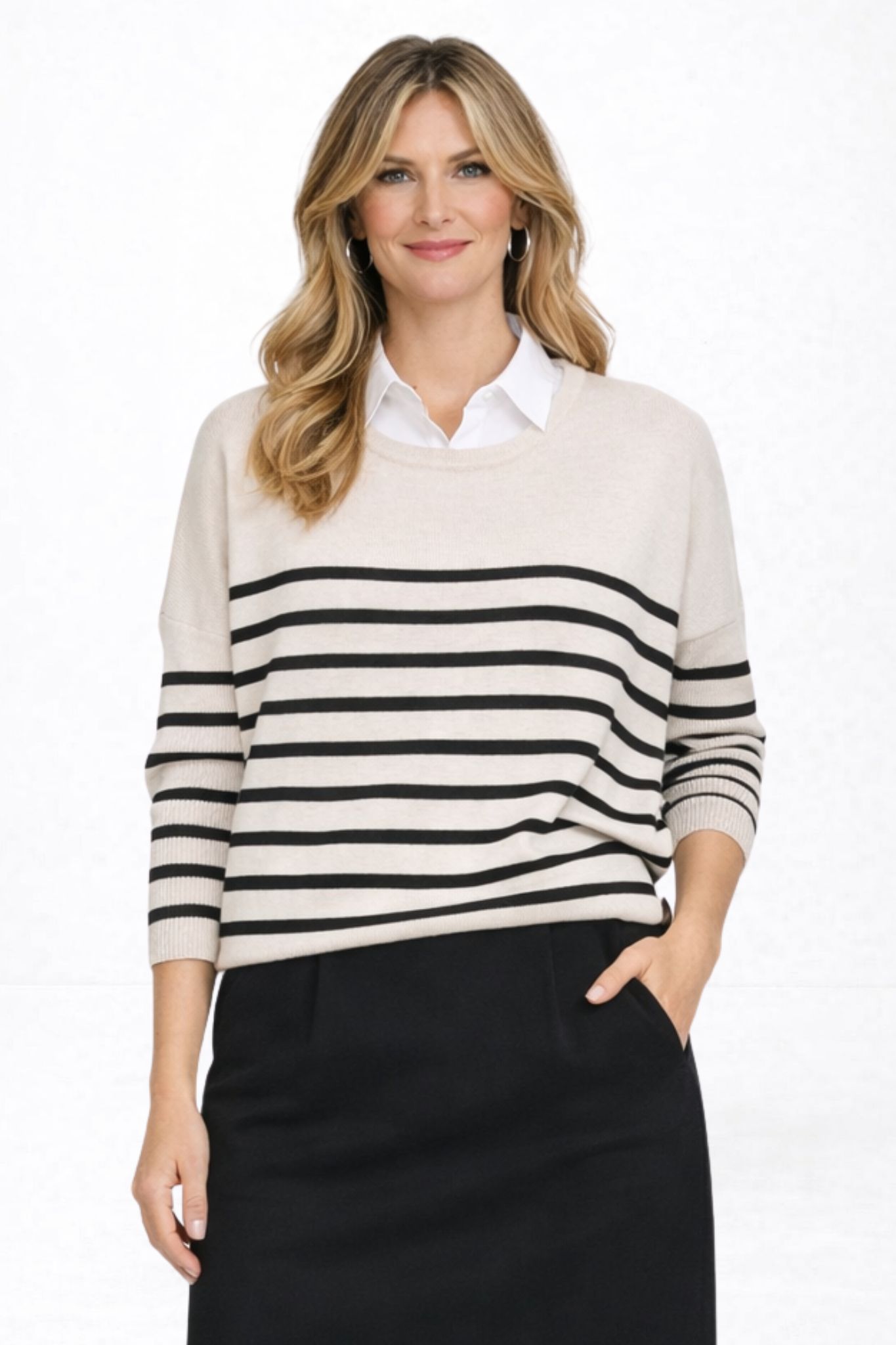 Stickad tröja i avslappnad passform, lite vidare upptill och lätt avsmalnande nertill.