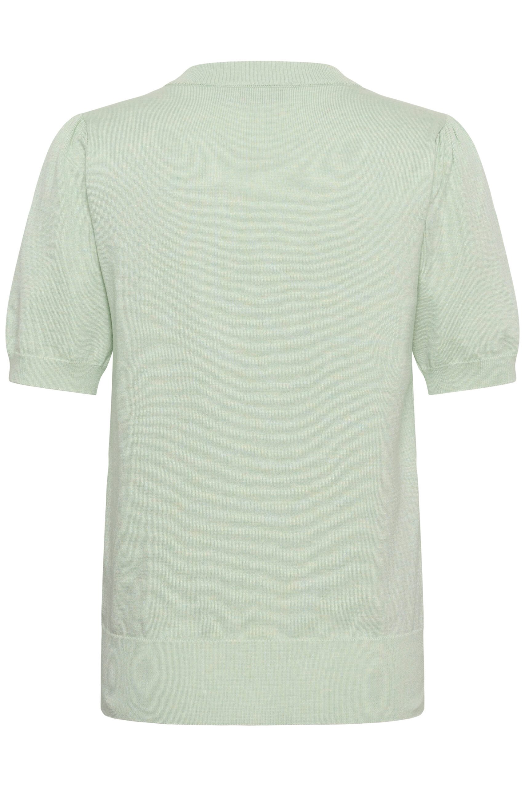 Rund hals och korta ärmar med ribbade muddar i ärmslut och nederkant.