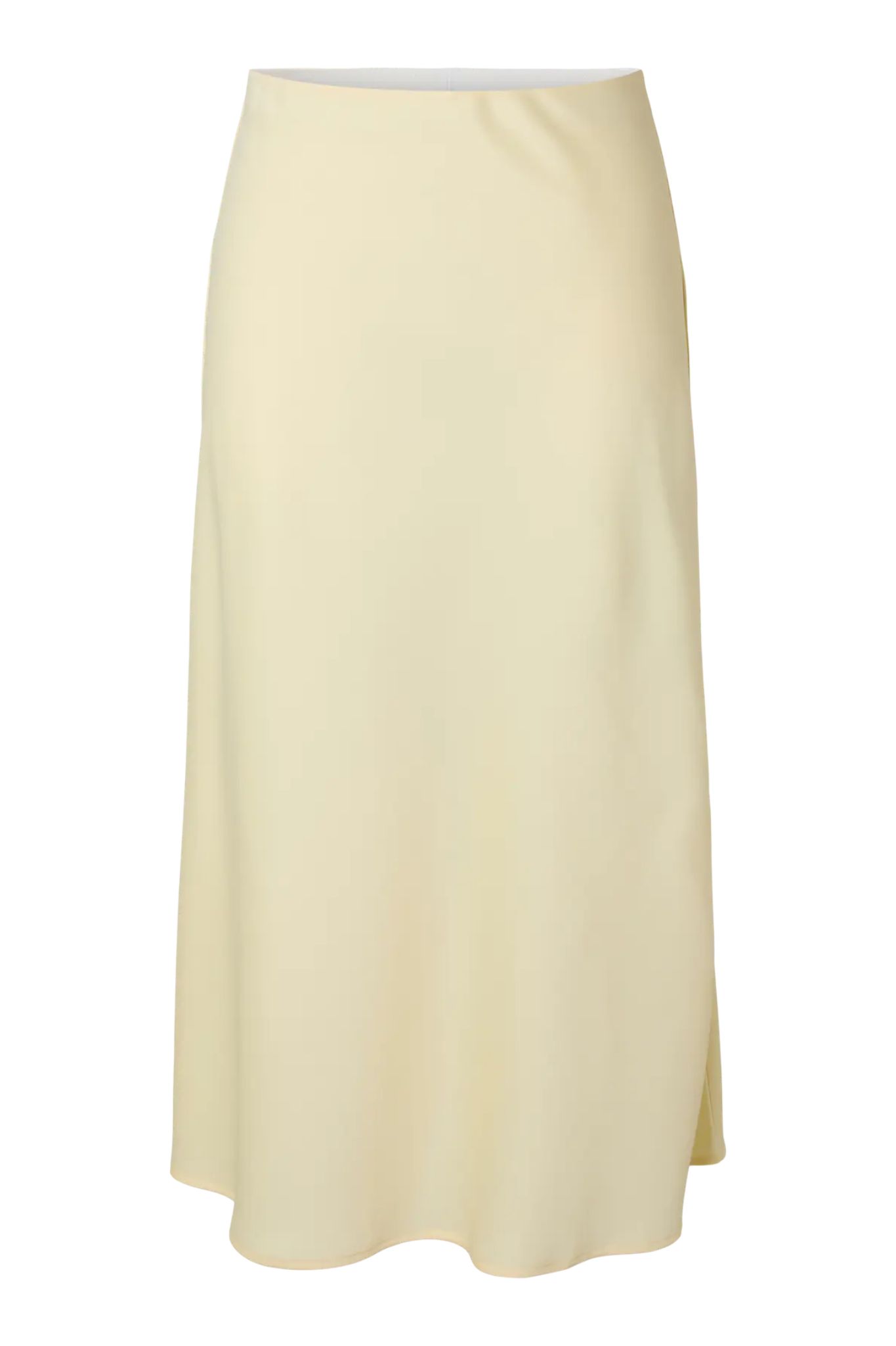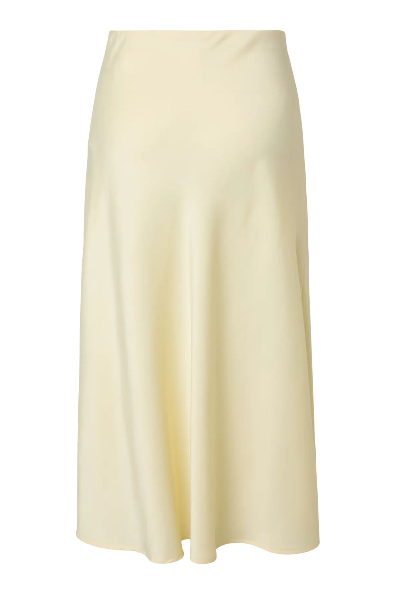 Vadlång satinkjol med hög, elastisk midja och lätt utställd siluett.